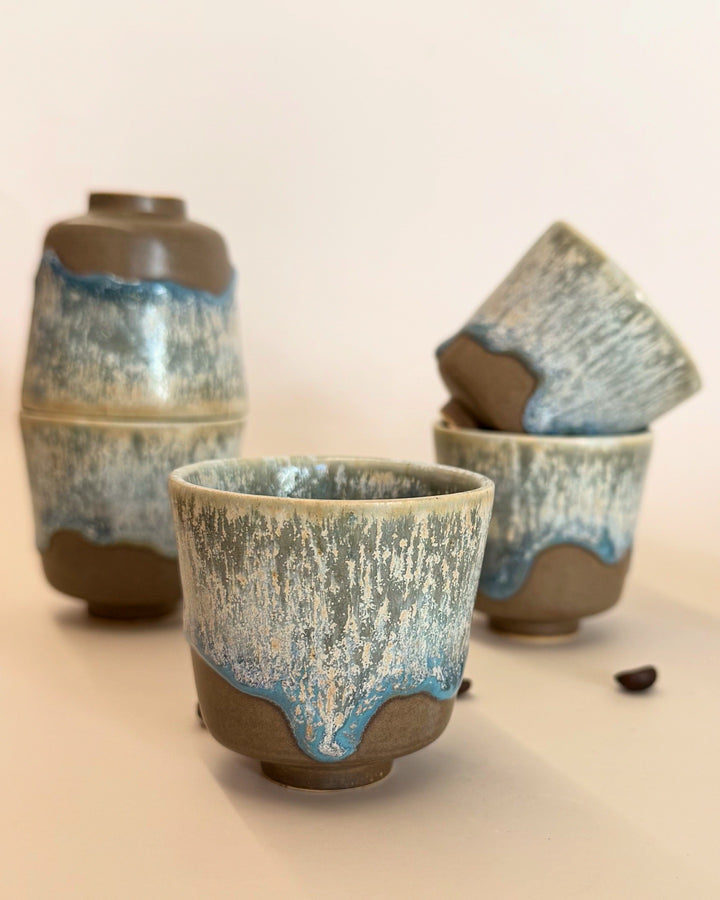 -اسم الفنجان FAYROUZ مستوحى من جوهرة التركواز مثل الحجر الي بيلمع بثبات تصميمه طويل بقاعده صغيره, يبدأ صباحك بالدفئ والجمال مثل اغاني فيروز.